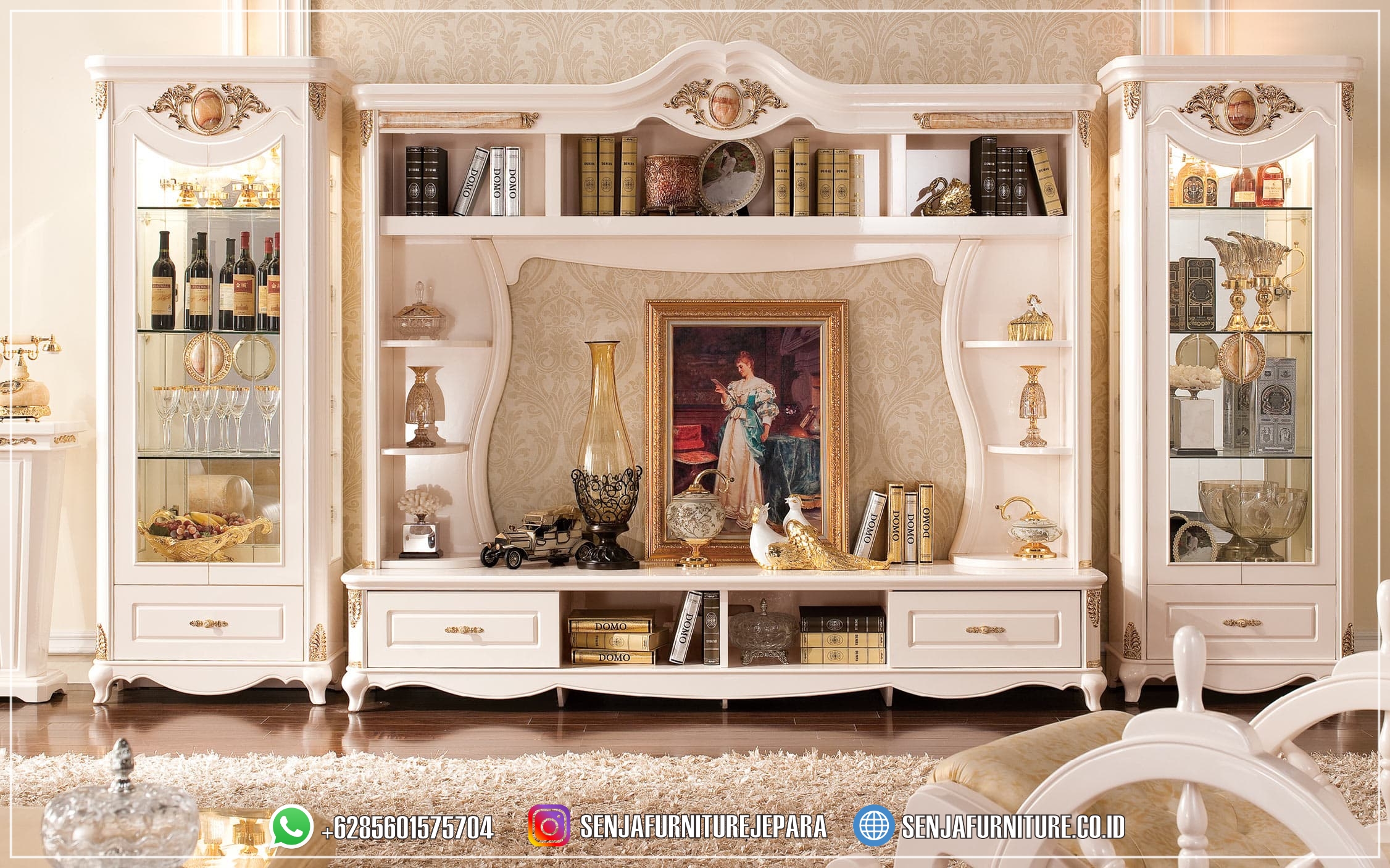 Anda dapat menciptakan ruang yang rapi dan teratur tanpa mengorbankan gaya dan keanggunan. Kesempurnaan untuk mengakomodasi kebutuhan modern Anda sambil mempertahankan pesona klasik yang tak lekang oleh waktu. Dibuat dengan perhatian terhadap kualitas dan desain, kami menawarkan Meja TV Mewah dengan kombinasi yang sempurna antara keindahan estetika dan kepraktisan. Tidak hanya sebagai tempat untuk meletakkan televisi dan perangkat elektronik, tetapi juga sebagai penyimpanan yang elegan untuk koleksi media dan barang-barang lainnya.