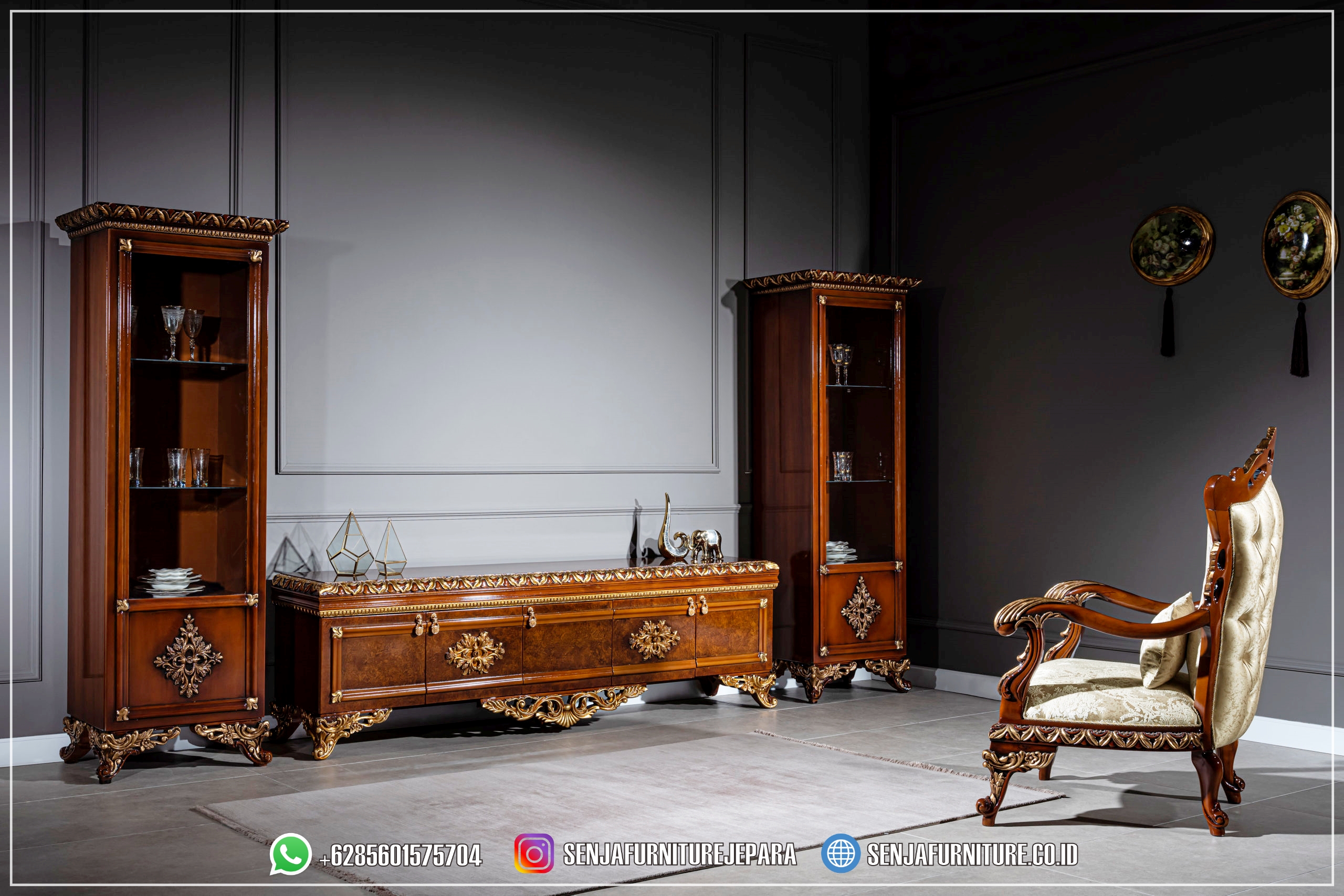 Anda dapat menciptakan ruang yang rapi dan teratur tanpa mengorbankan gaya dan keanggunan. Kesempurnaan untuk mengakomodasi kebutuhan modern Anda sambil mempertahankan pesona klasik yang tak lekang oleh waktu. Dibuat dengan perhatian terhadap kualitas dan desain, kami menawarkan Bufet TV Mewah dengan kombinasi yang sempurna antara keindahan estetika dan kepraktisan. Tidak hanya sebagai tempat untuk meletakkan televisi dan perangkat elektronik, tetapi juga sebagai penyimpanan yang elegan untuk koleksi media dan barang-barang lainnya.