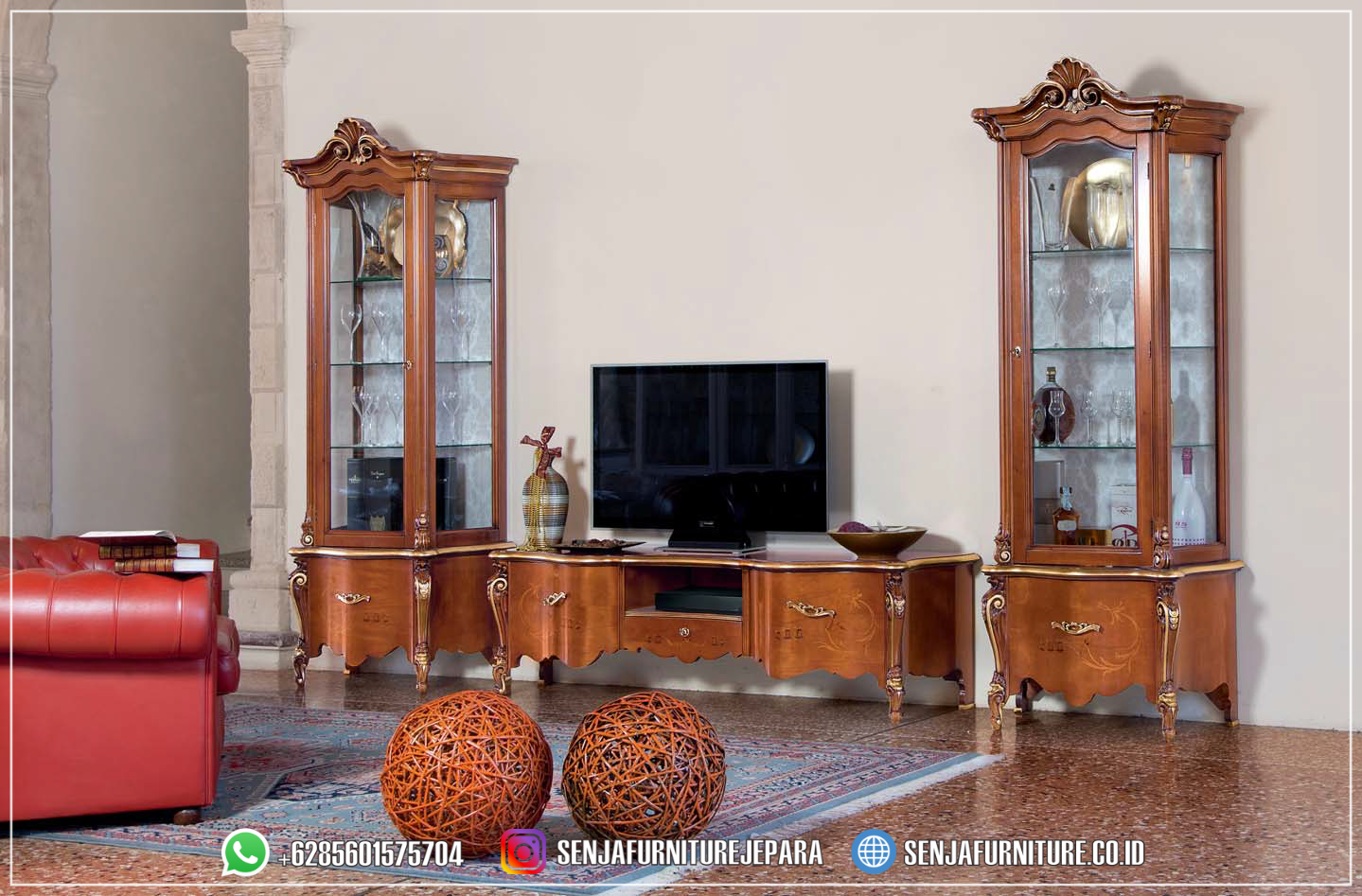 Desain Bufet TV Mewah Lemari Kaca Hias Eropa Klasik