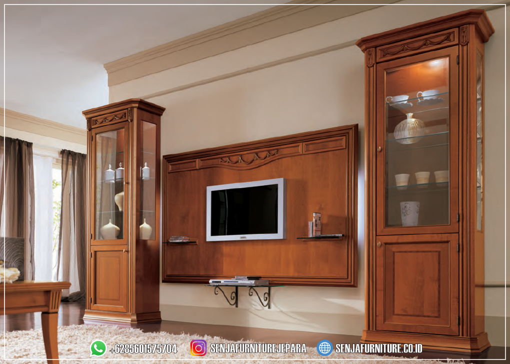 Anda dapat menciptakan ruang yang rapi dan teratur tanpa mengorbankan gaya dan keanggunan. Kesempurnaan untuk mengakomodasi kebutuhan modern Anda sambil mempertahankan pesona klasik yang tak lekang oleh waktu. Dibuat dengan perhatian terhadap kualitas dan desain, kami menawarkan Bufet TV Mewah dengan kombinasi yang sempurna antara keindahan estetika dan kepraktisan. Tidak hanya sebagai tempat untuk meletakkan televisi dan perangkat elektronik, tetapi juga sebagai penyimpanan yang elegan untuk koleksi media dan barang-barang lainnya.