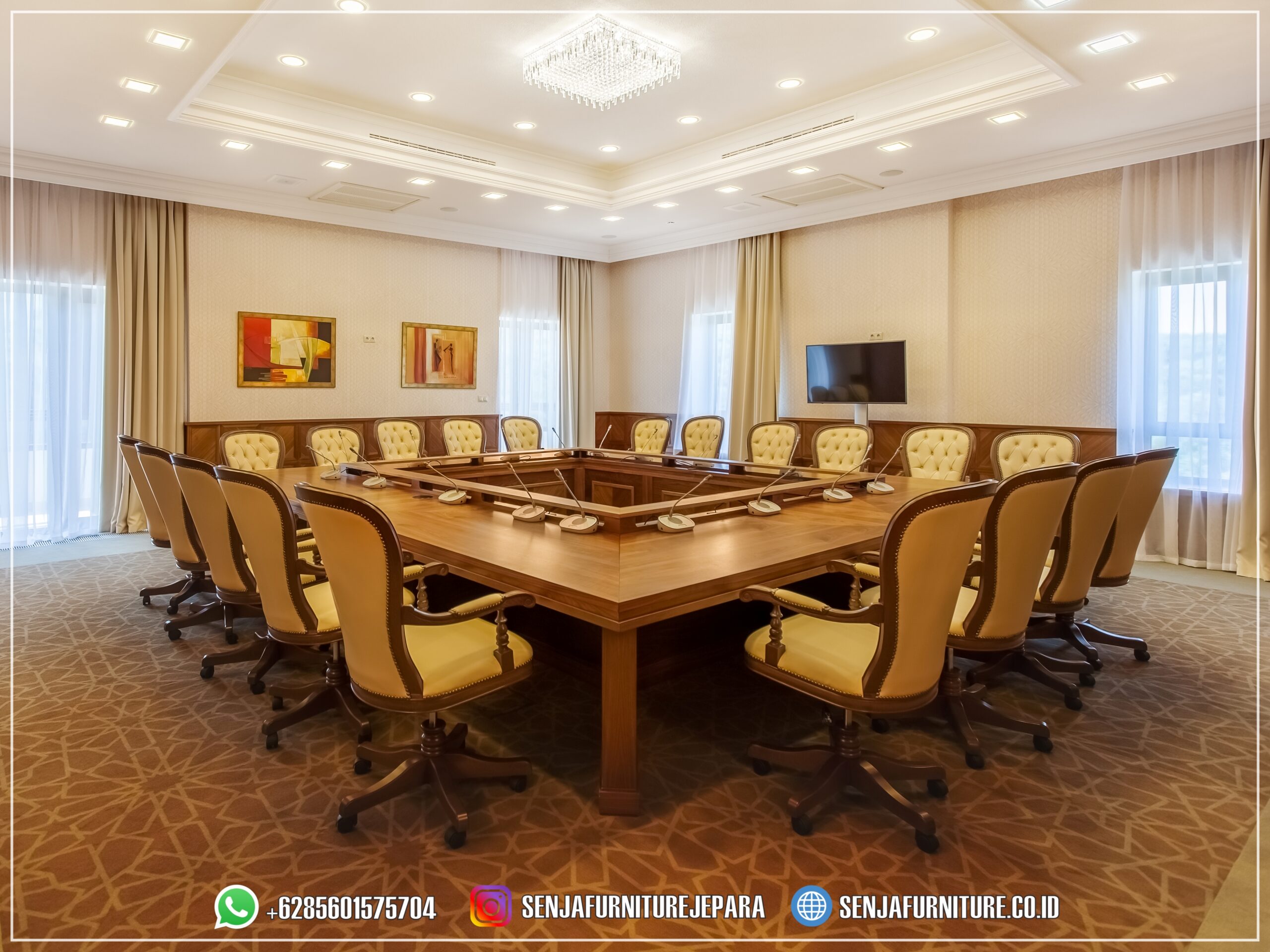 Kapasitas Meja Rapat Kantor 20 Kursi Kulit Kayu Jati Jepara