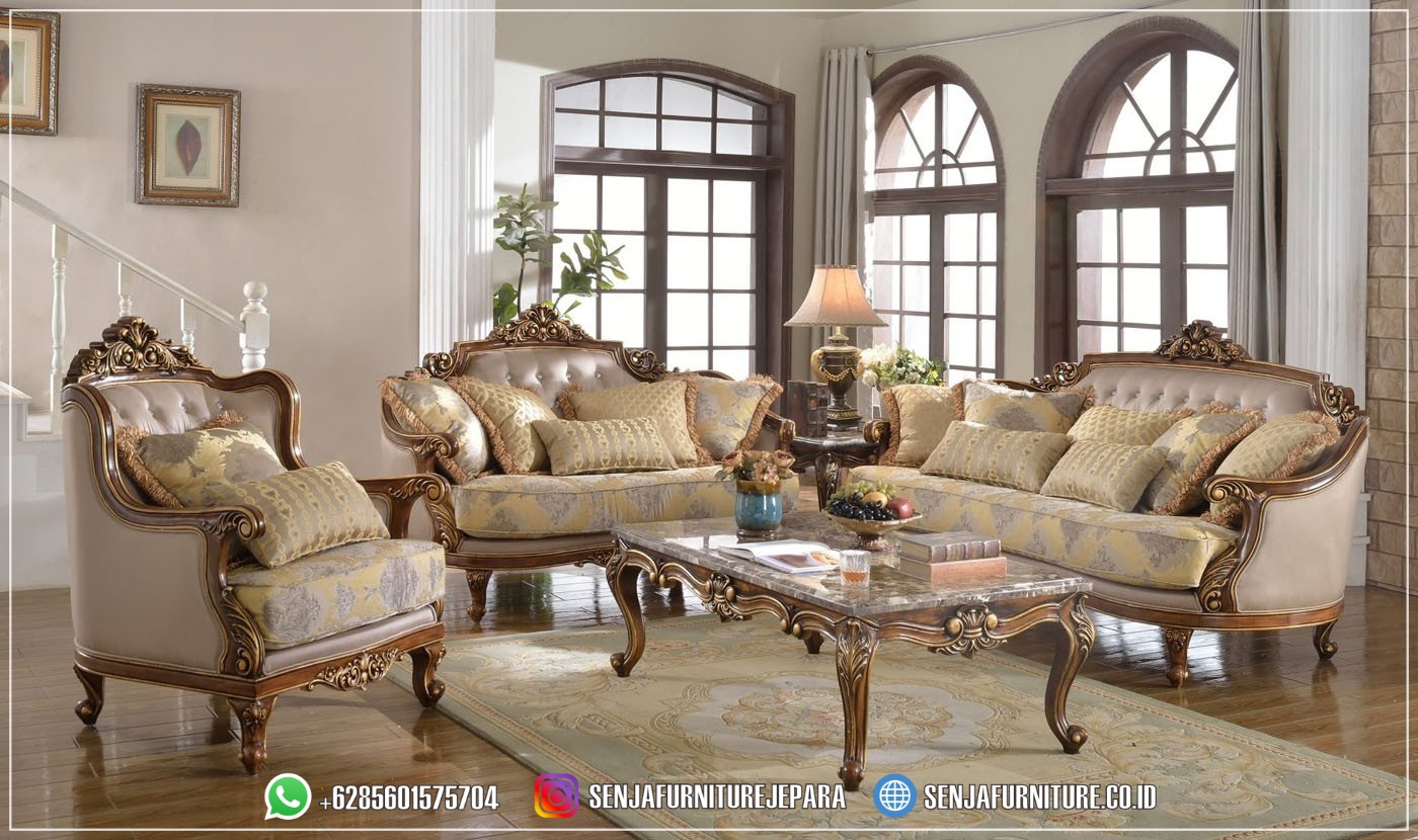 Luxury Sofa Tamu Jati Natural Finish Interior Rumah Mewah