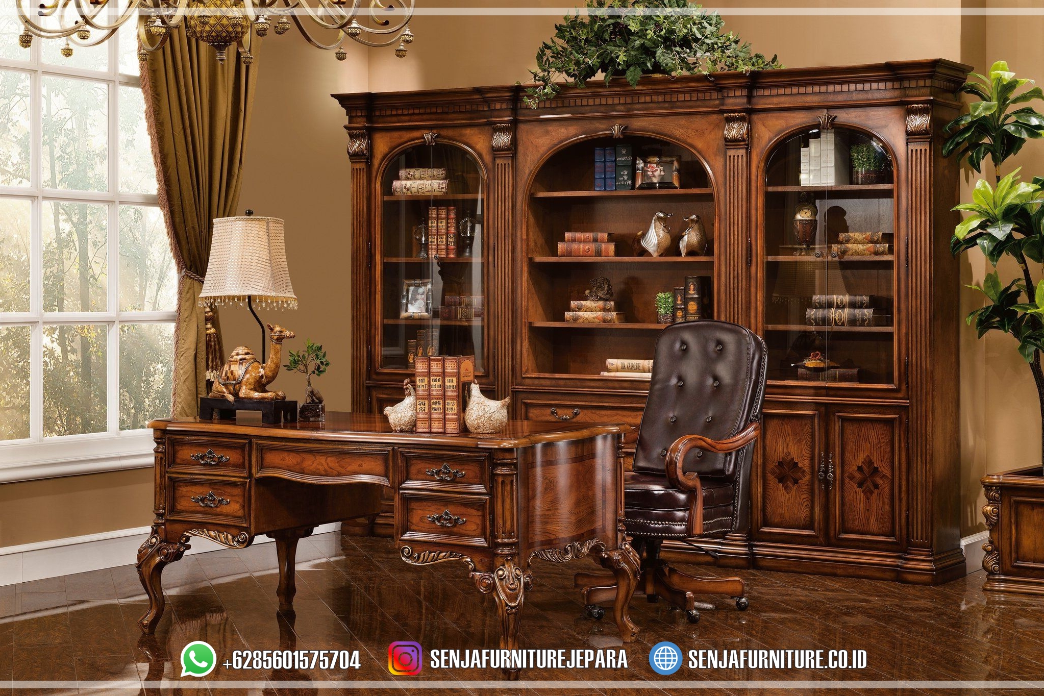 Premium Meja Kerja Direktur Interior Klasik Modern Full Ukir
