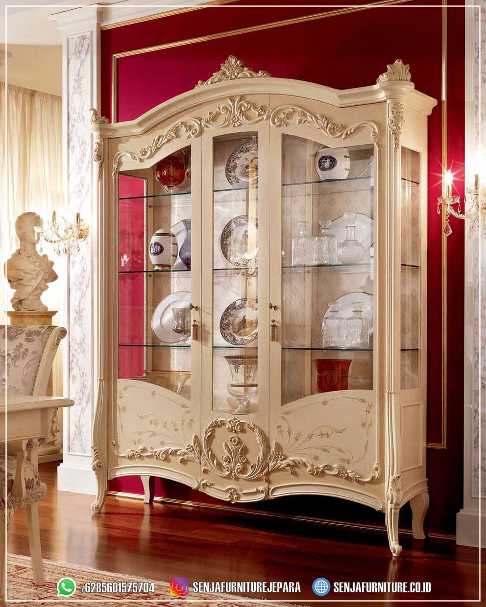 Dengan ruang penyimpanan yang mencukupi, Anda dapat dengan mudah menata koleksi barang berharga Anda. Lemari Hias Mewah adalah pernyataan gaya yang berkelas dan memberikan sentuhan elegan yang akan meningkatkan estetika ruangan Anda dengan gemilang. Dibuat dengan detail yang teliti dan perpaduan antara kayu yang indah serta ukiran yang memukau, Lemari Hias Mewah ini tidak hanya menawarkan fungsi praktis sebagai tempat penyimpanan, tetapi juga menjadi titik fokus yang menarik perhatian tamu ketika berkunjung ke rumah Anda.