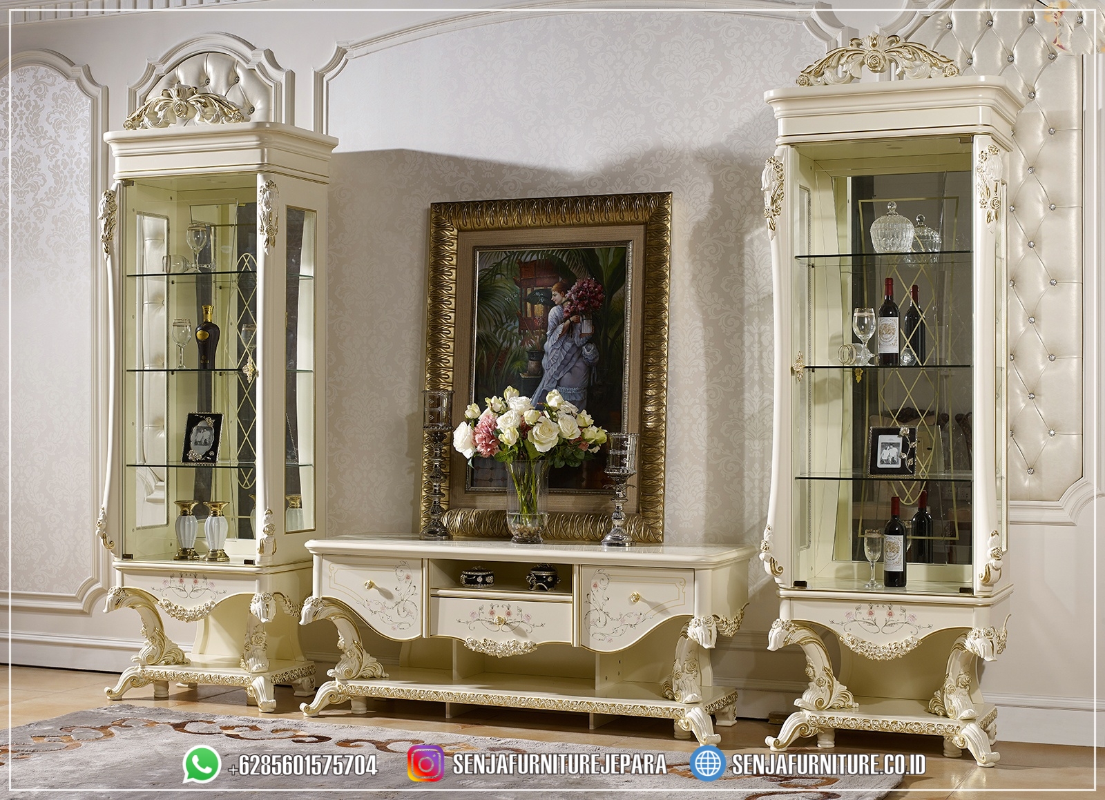 Produk Bufet TV Mewah Kaca Mebel Jepara Klasik Ivory