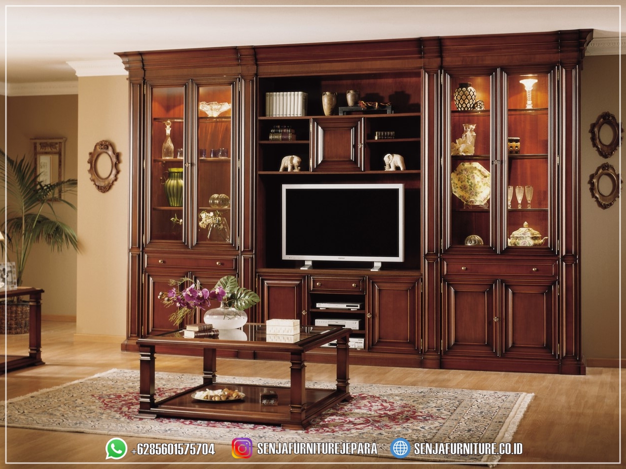 Rak Bufet TV Mewah Minimalis Kaca Material Jati Terbaik
