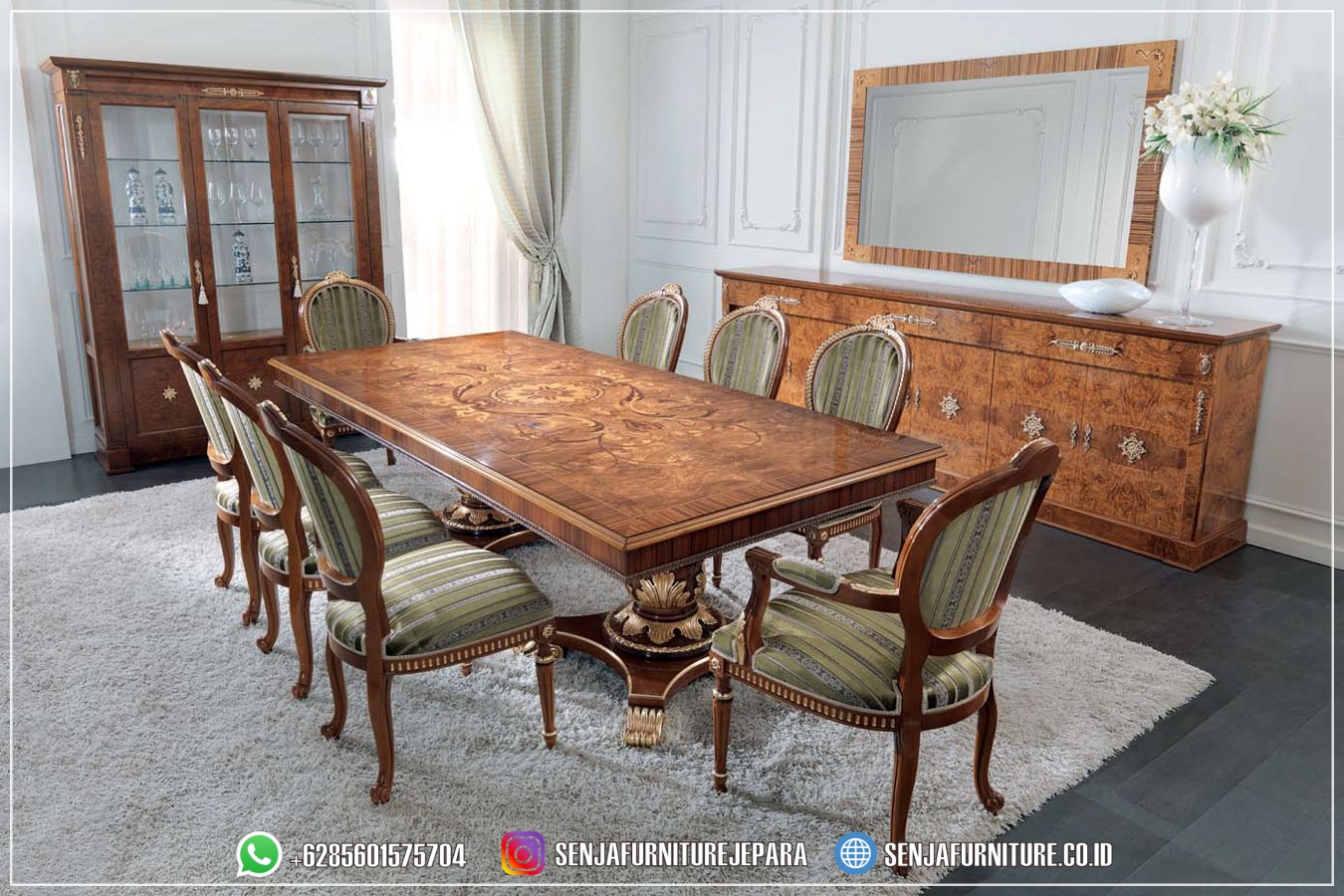 Ruang Meja Makan Mewah Klasik 8 Kursi Jati Veneer